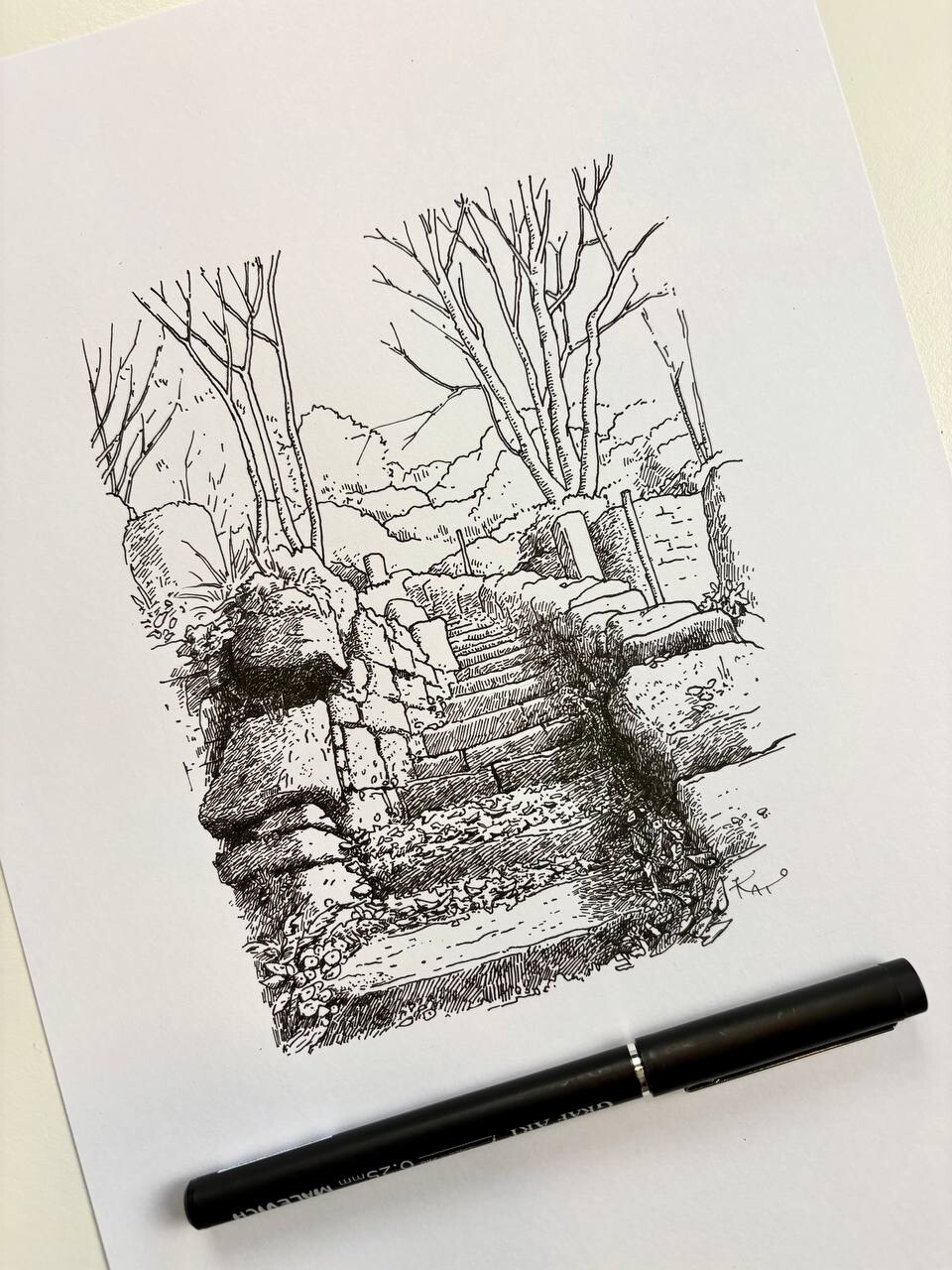 Мы будем работать не над «стерильной» штриховкой, которая хороша на технических скетчах, но смотрится индустриально и лысовато. Я покажу, как штриховать старинные камни, как штриховать растения, растущие рядом с постройками. Вы научитесь уплотнять штриховку в правильных местах, не делая рисунок избыточным.